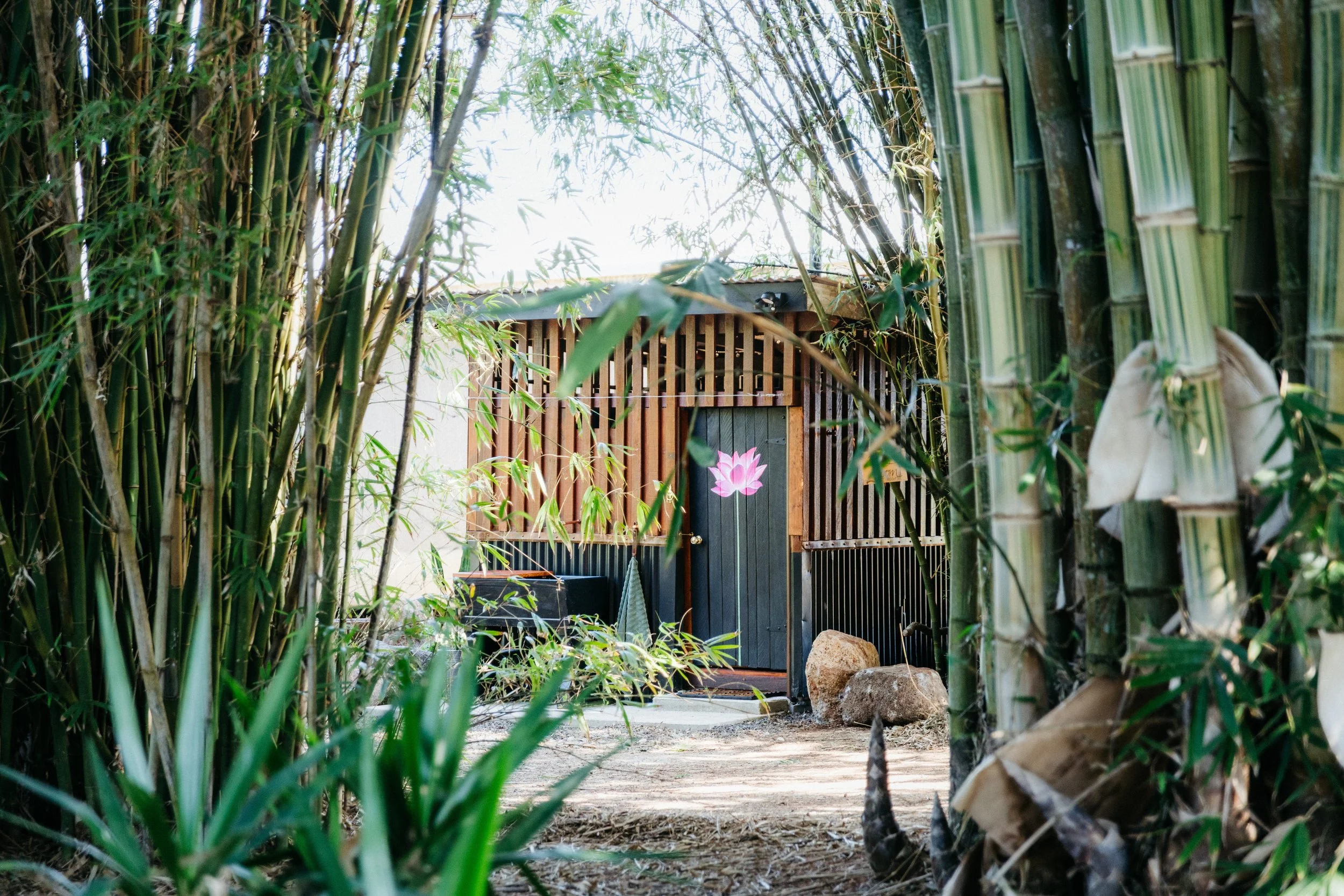 Your bathroom away from home. Enjoy the ambience this beautiful indoor/outdoor bathroom imbued with river stones, recycled timber, copper shower & compost toilet has to offer to your daily body rituals. The Lotus Room has bloomed from a hand-crafted reconstruction of an old chicken coop reflecting the truth of what can bloom from mud. Nestled beside the Buddah Bamboo grove, The Lotus Room is available to guests’ attending events, sauna experiences or staying in the Hip Camp.